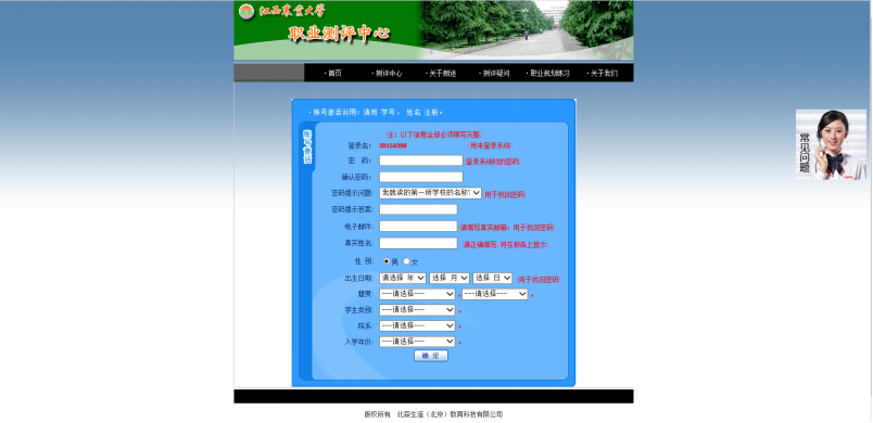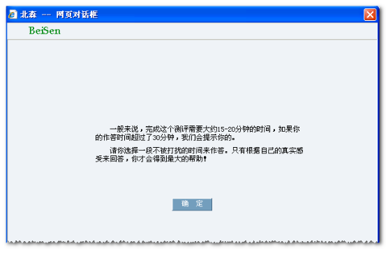 点击【开始测评】,请在跳出的窗口中点击【确定】开始作答。