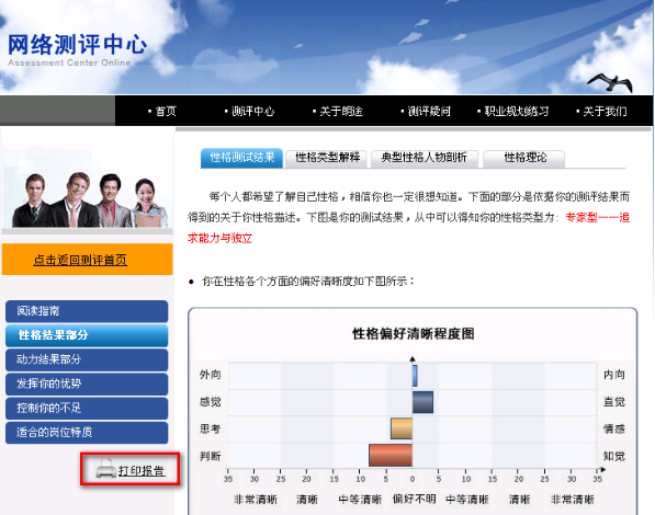 点击【整体报告】,或者在拆分版报告显示页面中点击【打印报告】,会跳出新的页面,学生可以看到报告的完整版。