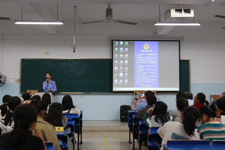 为进一步推进反诈宣传进校园,增强大学生反诈骗意识,预防校园诈骗,10月31日晚,我院联合经开区民警于五教109教室开展反诈宣讲活动。刑侦大队副大队长鲁显辉及反诈中心一众警官参加本次活动,汉语言文学、音乐学全体新生到场参与。