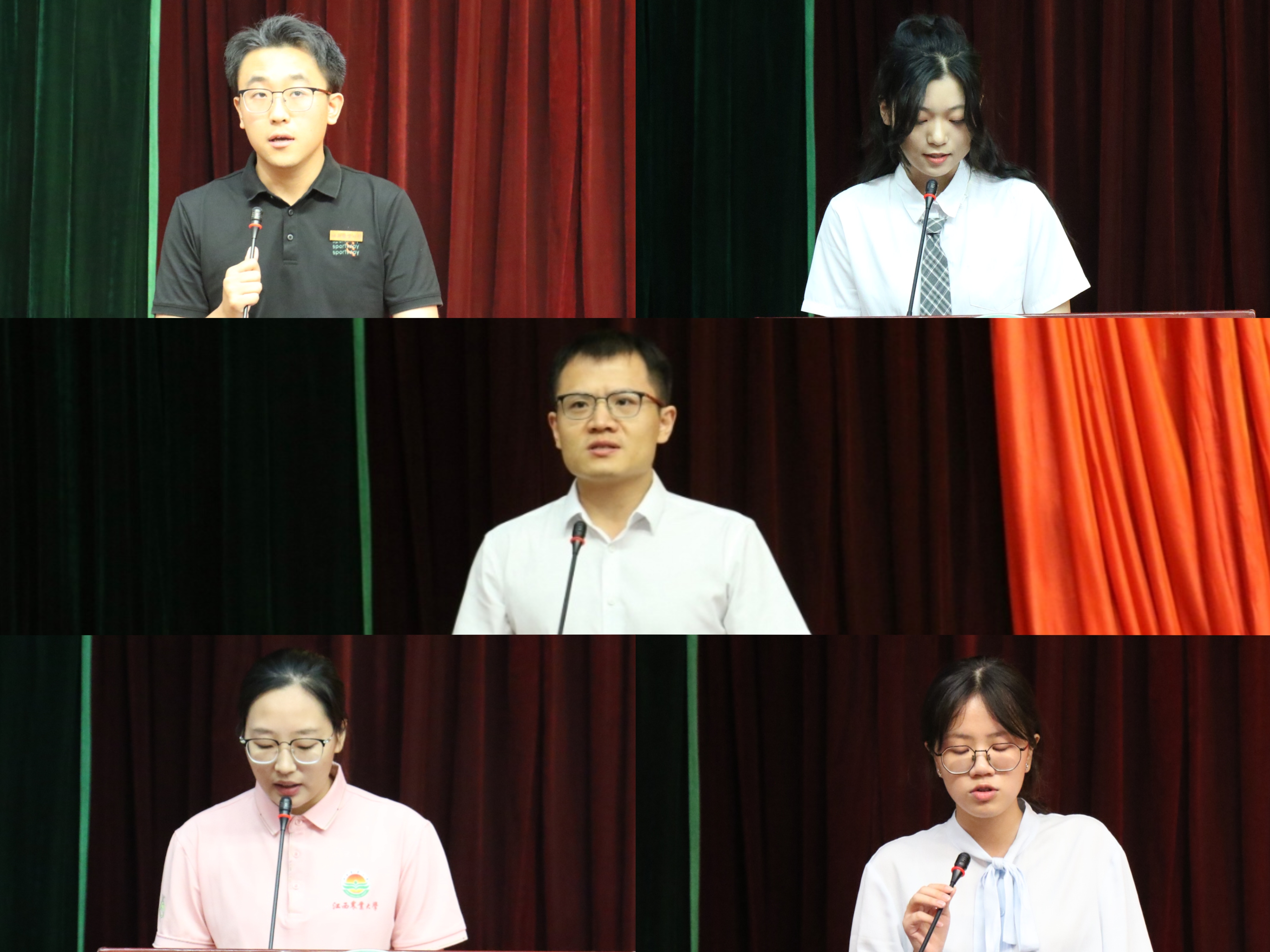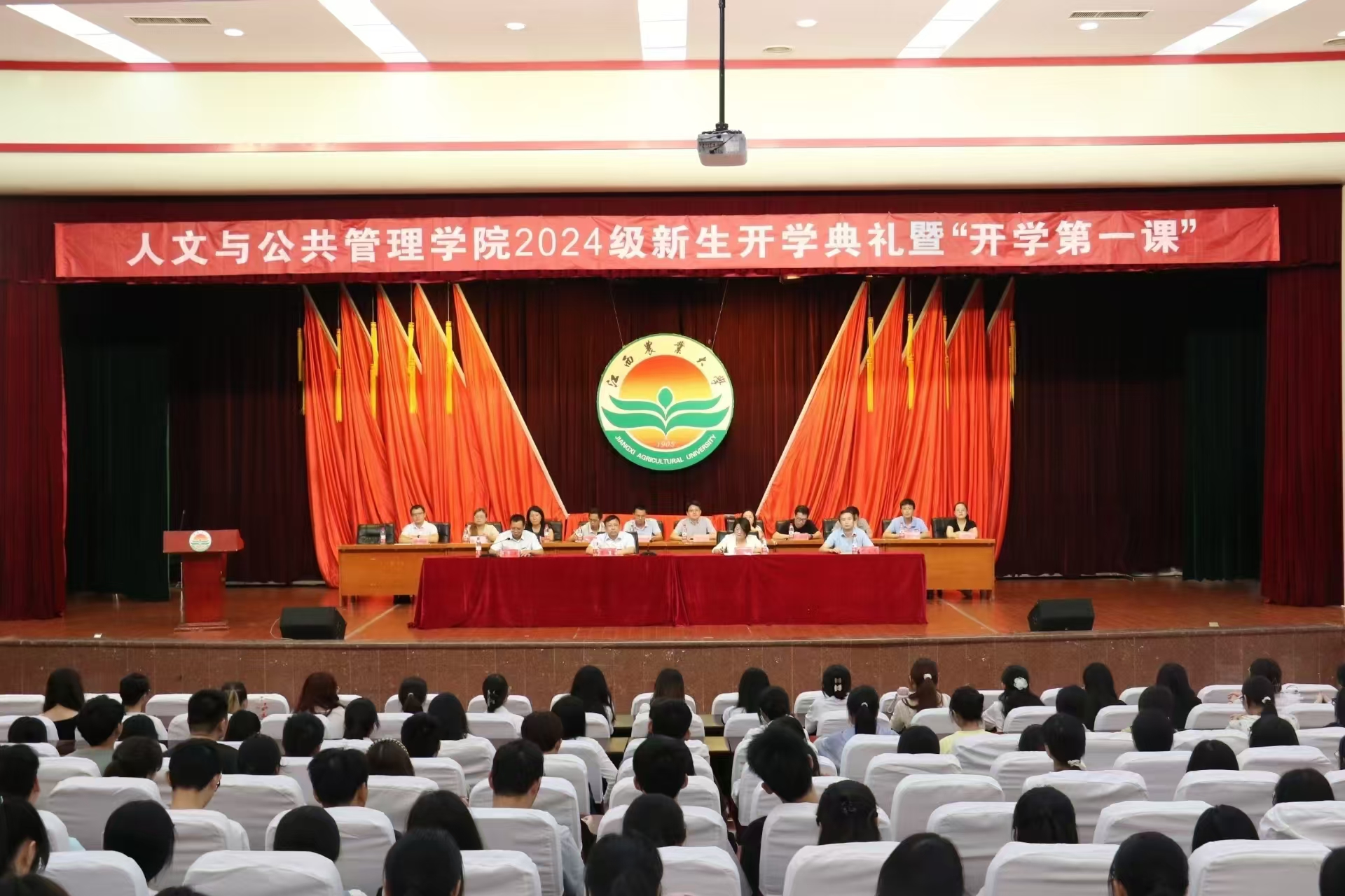 法学2401班戴文琦、2024级研究生魏思琪代表全体本科新生及研究生新生发言,他们均表示要担当起对共同理想的责任,奋发图强、砥砺前行,以更加严谨的态度、更加扎实的学风,做“顶天立地”的研究。公共事业管理2202班李凯琦、2022级研究生张志垚作为老生发言,他们对2024级新生的到来表示了欢迎,并希望新同学们在服务乡村振兴的伟大事业中积极作为。新生班主任代表林家鑫博士代表新生班主任寄语新生,他希望新同学们尽快适应大学生活,对学习保持热情,对运动保持热爱,对他人保持热心,做一名热爱学习、热爱运动、充满热心的江农人。