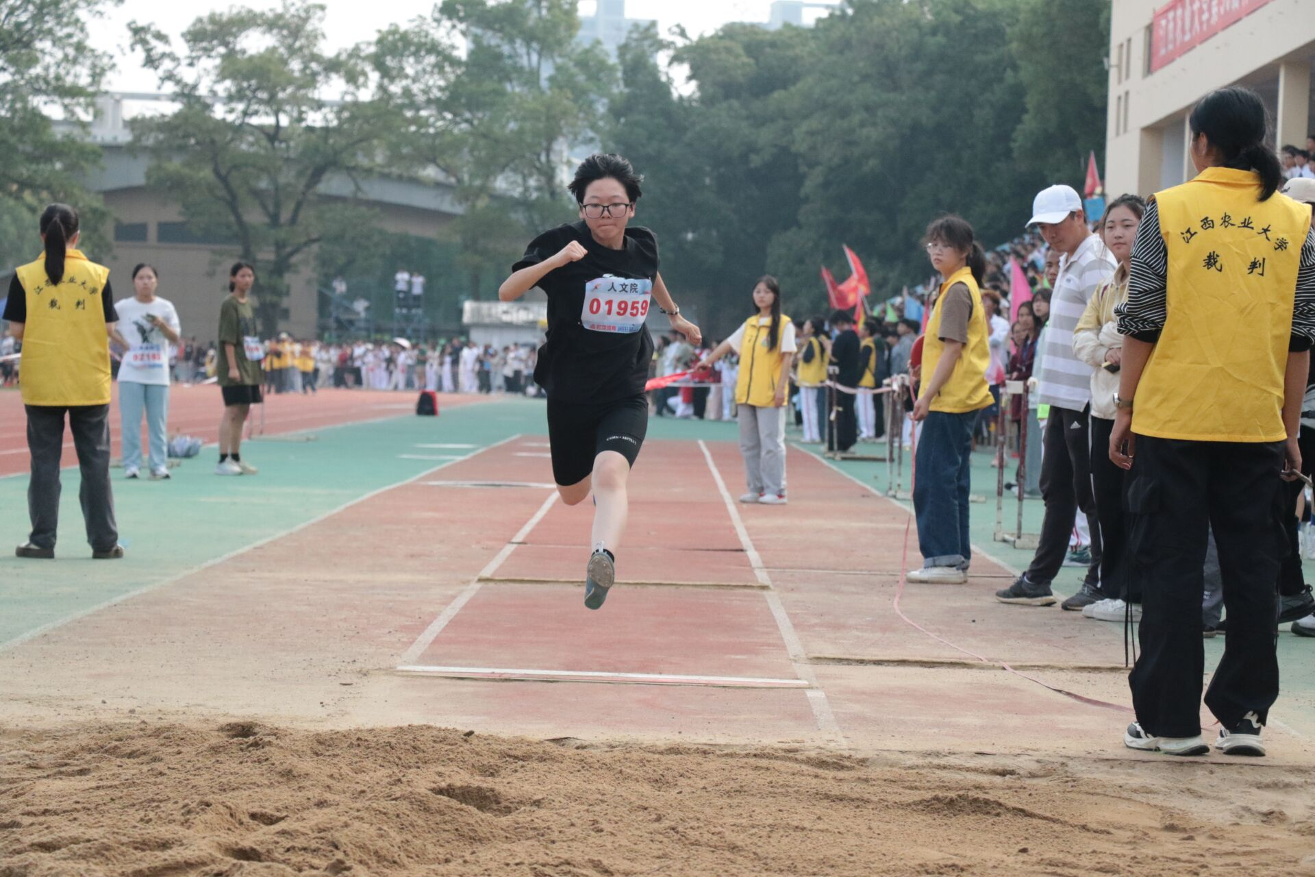 17日,在学生女子甲组跳远决赛及学生女子甲组三级跳远决赛中,法学202201班李霞同学腾跃而起,摘得双面金牌;在学生女子乙组跳远决赛中,公管202402班谌子玲同学和文学202402班刘小婷同学分别取得了第一名和第三名的好成绩。