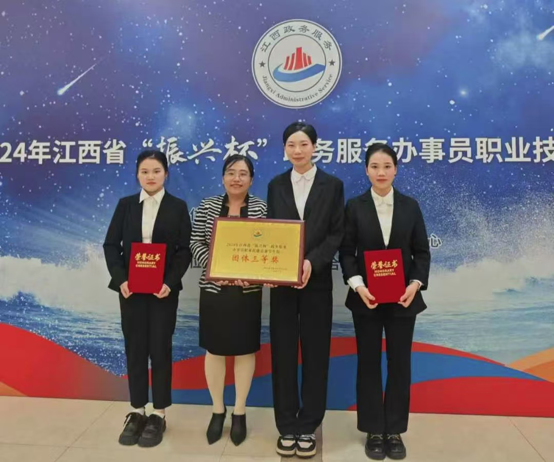 据悉,2024年江西省“振兴杯”政务服务办事员职业技能竞赛分为选拔赛与总决赛,刘婷、邱紫君、孔茹茹三人以较为扎实的理论知识初步通过校内选拔赛并代表我校前往江西财经大学总决赛现场进行比赛,共有12支高校代表队进入总决赛。总决赛分为实操模拟和理论知识竞答两场,实操模拟为实机操作考核,理论知识竞答含必答和抢答两个环节,得分累计高者胜出,两场比赛分别于27日下午与28日下午举行。刘婷、邱紫君、孔茹茹三人凭借扎实的专业技能、优秀的专业素养以及出色的表现取得优异成绩,刘婷、邱紫君均获得个人优胜奖,江西农业大学代表队获得学生组团体三等奖的好成绩。