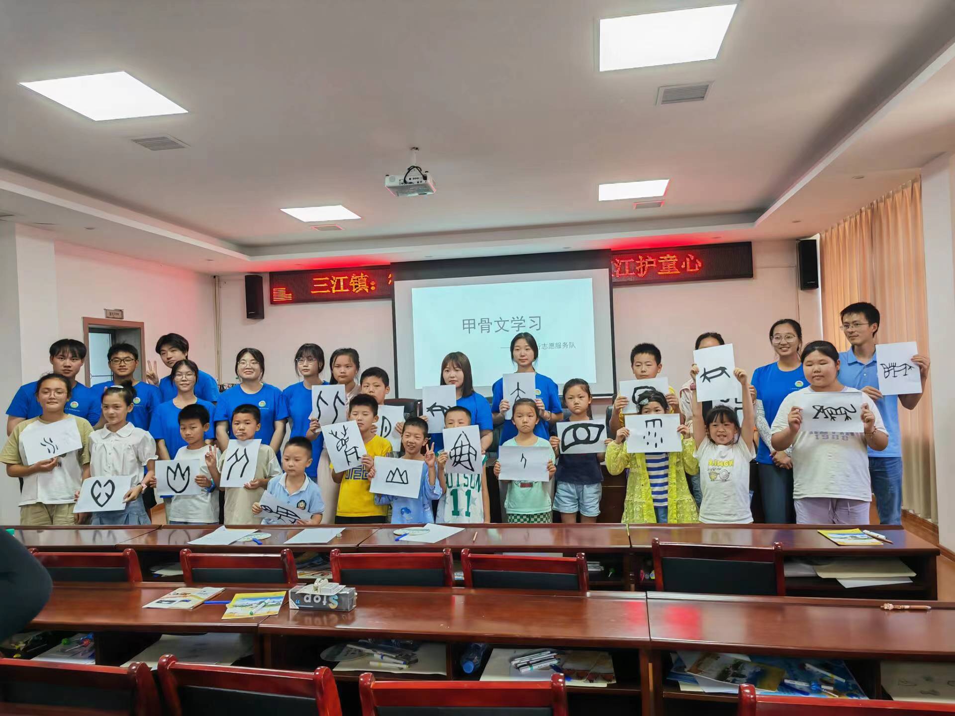 支教践初心,微光聚温暖。院两支支教实践队走进留守儿童,为留守儿童们知识的光芒与心灵的慰藉。筑梦起航支教队向孩子们讲解神话故事《西游记》,并引导孩子们进入成语世界,积极推广普通话,同时开展折纸课,用纸飞机承载梦想,筑梦起航,放飞每一位孩子的理想;微光“童”行支教队巧妙运用甲骨文等中华优秀传统文化,唤醒小朋友们对汉字起源的好奇与向往,一窥古文字的深邃与魅力,在字里行间中感受那份跨越时空的文化共鸣。支教活动不仅为孩子们的暑期生活添上一抹亮色,点亮了乡村孩子的童年,也照亮了支教之路的每一个瞬间。