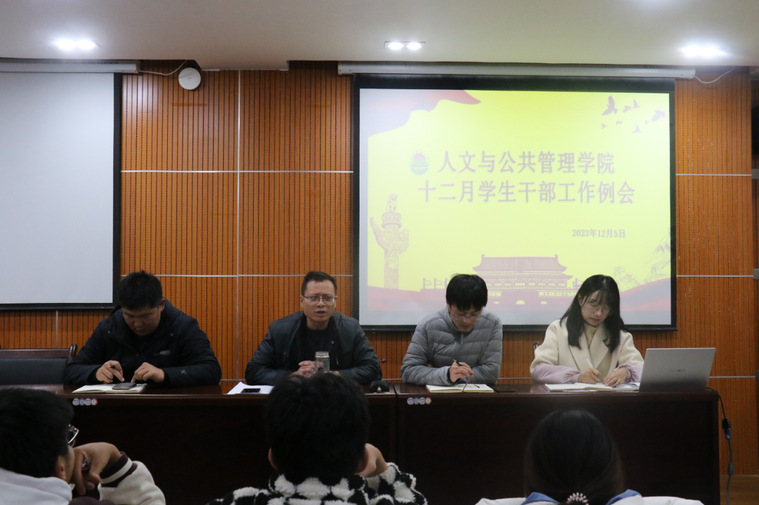为顺利推动新一阶段工作任务的开展,提升我院学生干部的工作能力和综合素养,凝聚团结奋进的力量,12月5日,我院于院办109召开十二月学生干部工作例会。学院党委副书记曹人龙及团委学工办老师参加了本次会议,全体学生干部到场参与。