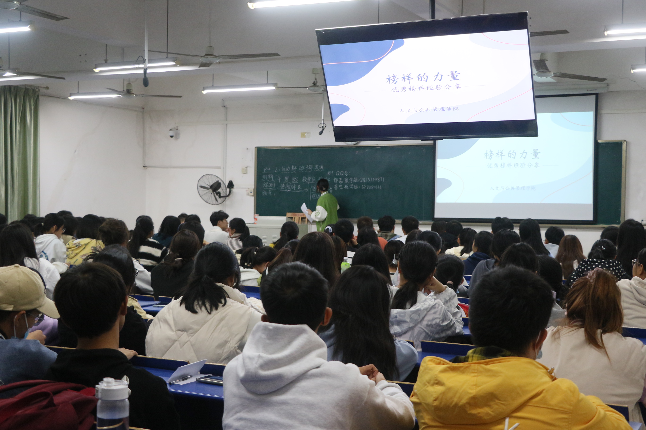 为激励广大学子汲取先进榜样力量,营造优良学风,10月19日与20日晚7时,我院于先骕楼109教室举办了“榜样的力量”系列讲座。本次讲座邀请到法学201901班郭嘉俊、公共事业管理201901班蔡莹枢、音乐学201902班敖盼及汉语言文学201902班刘天四位同学分享保研经验,20、21、22级部分同学到场参与。