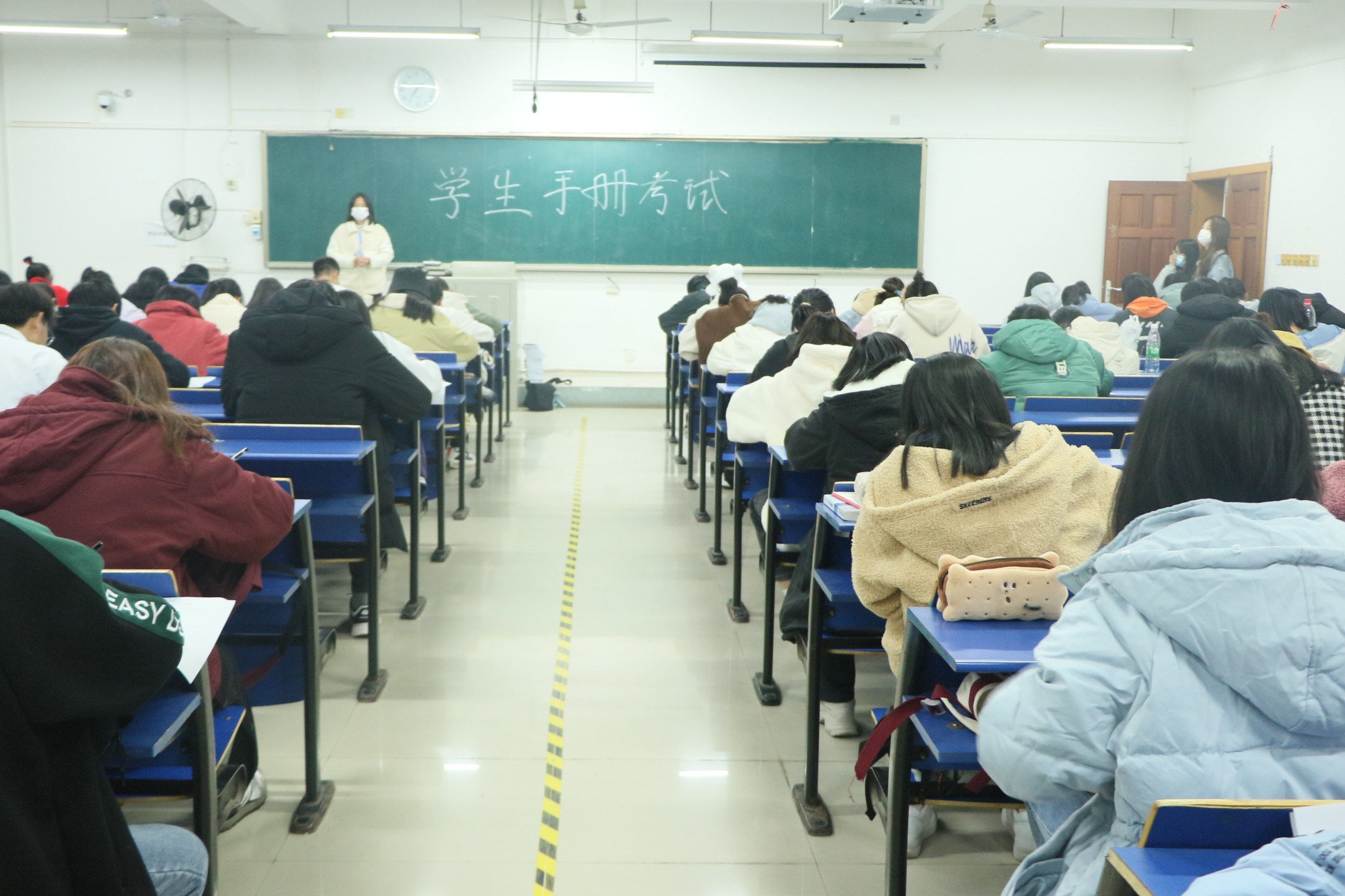 此次考试采用线下闭卷形式,试题设计别出心裁,针对性强。试卷包括学校发展历程、校风校训、评优表彰、困难生认定等内容,同时涉及学校教学、相关管理规章制度,全面细致地考查了学生对《学生手册》的了解程度。在考试过程中,同学们严格遵守考场纪律,认真答题,考场秩序良好。