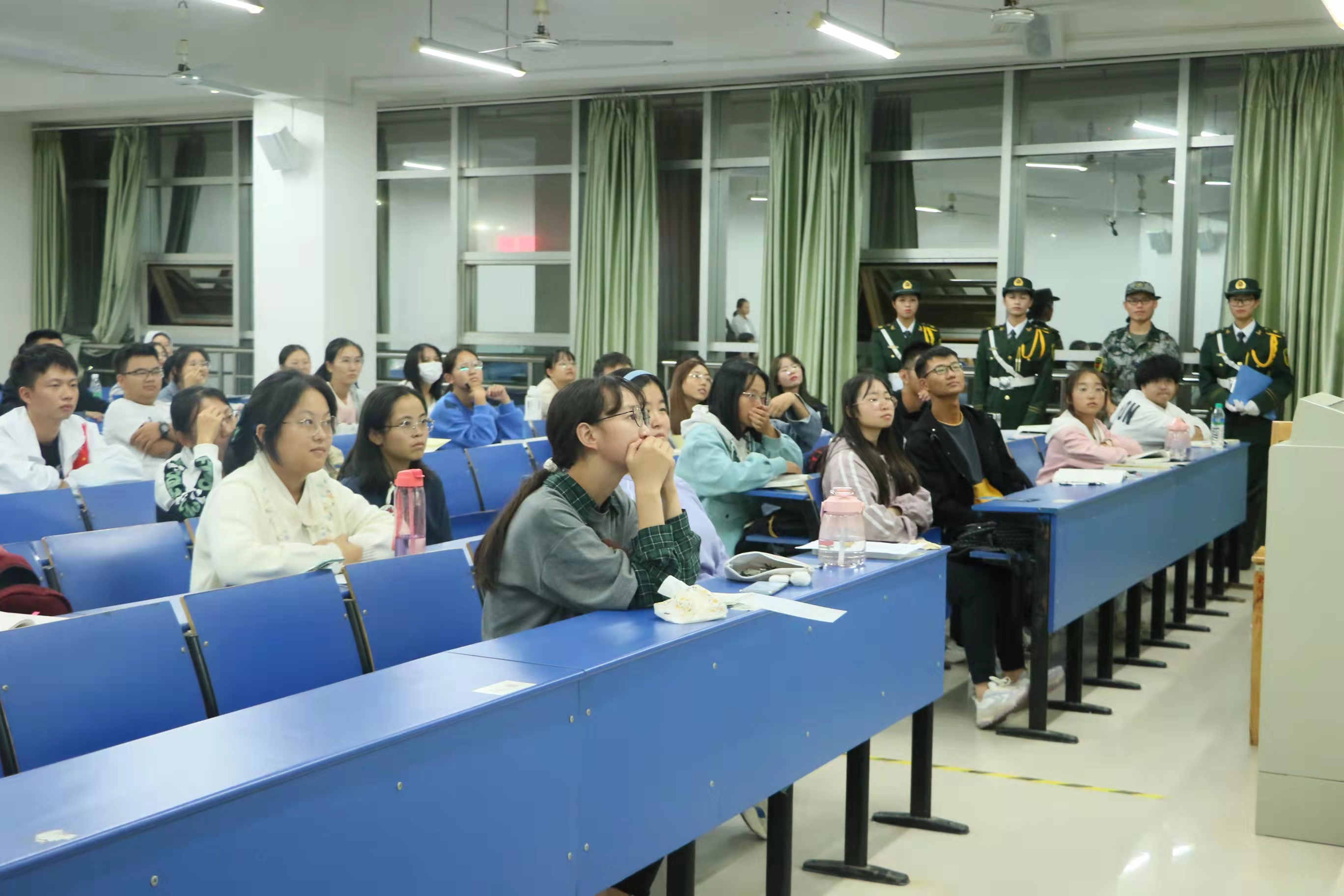 为深入开展党史学习教育,进一步增强我院学子爱国意识和国防意识,鼓励和吸引优秀大学生参军入伍、投身军营建功立业,10月13日晚,我院团委组织安排新生军训教官队成员在先骕楼面向全院新生进行征兵宣讲。
