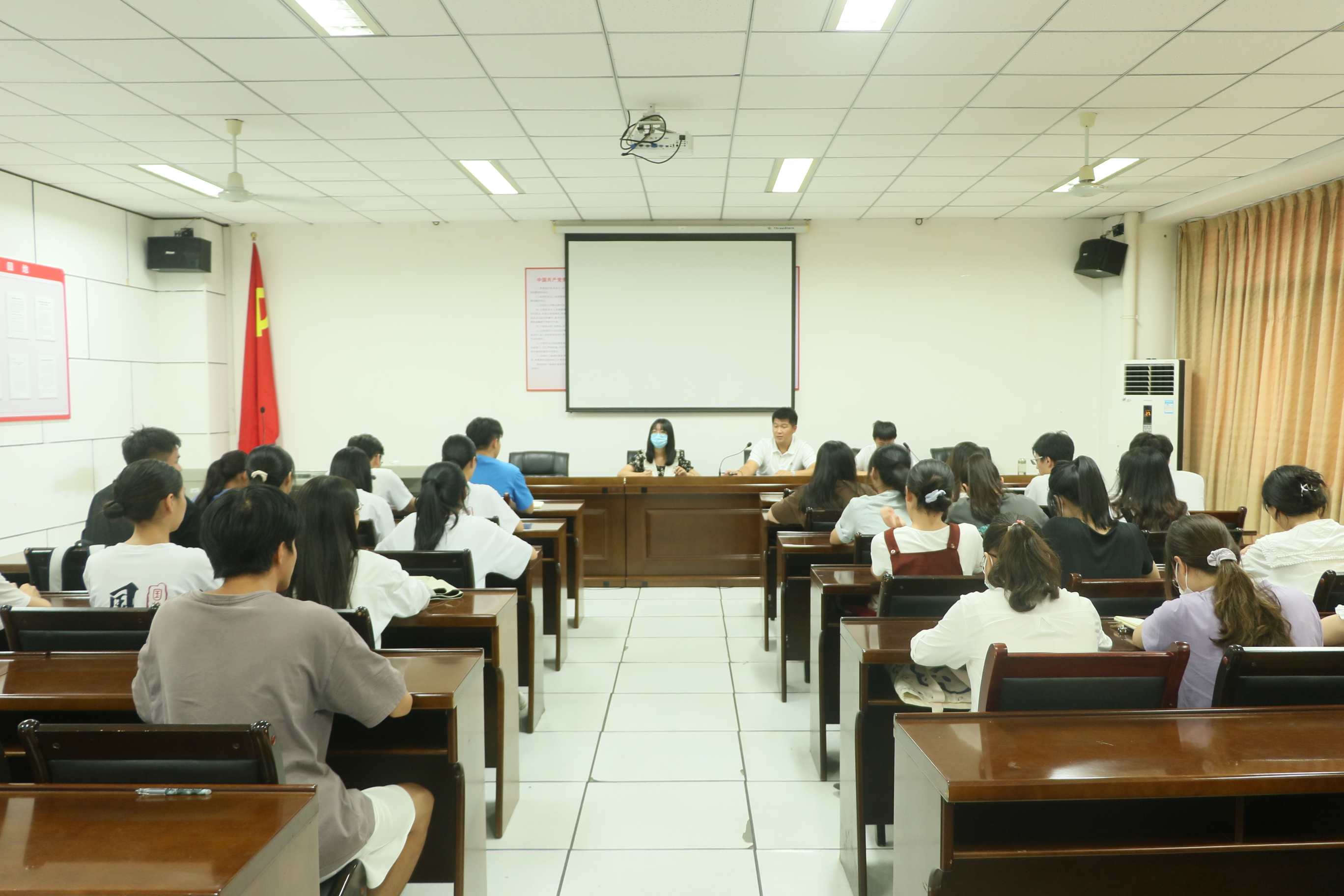 9月15日下午,我院于院办大会议室召开2022级新生军训动员大会。本次会议由院团委书记李文瑞主持,团委副书记袁梁及政治辅导员黄佳、龚诗雨参加了本次会议,全体新生军训教官及新生班级班主任助理到场参与。