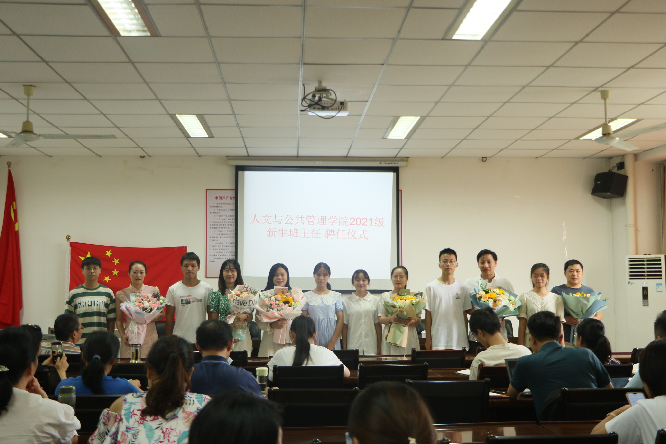 9月7日下午,我院于院办215会议室举行2021级本科生班主任聘任仪式。刘彩云、陈建锋、陈琼、文君、丁颖、黄佳、廖镇宇七位老师受聘成为2021级本科生班主任。学院领导、全院教职工和新老生代表参加本次聘任仪式。