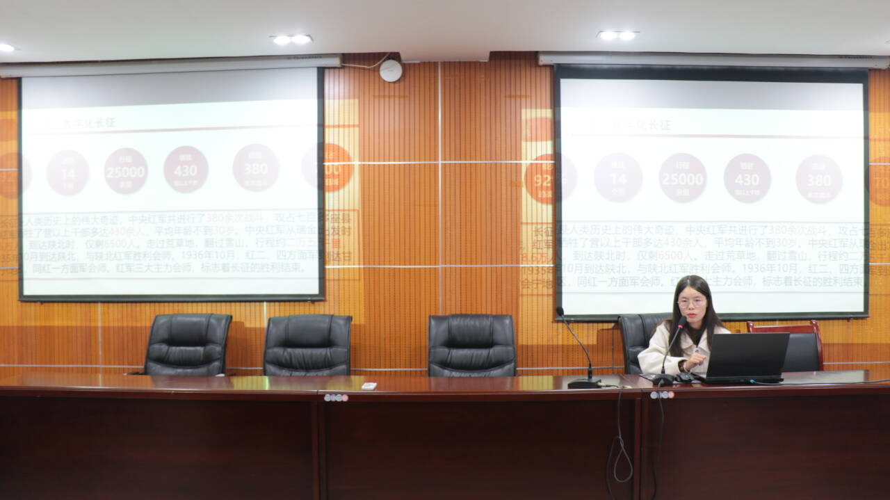 为大力弘扬长征精神,传承红色基因,赓续红色血脉,11月26日,我院在院办109举行“弘扬伟大长征精神,走好新时代长征路”宣讲会。宣讲会邀请马克思主义学院习近平新时代中国特色社会主义思想研究生宣讲团成员洪运梅担任主讲,我院部分团干部参加学习。