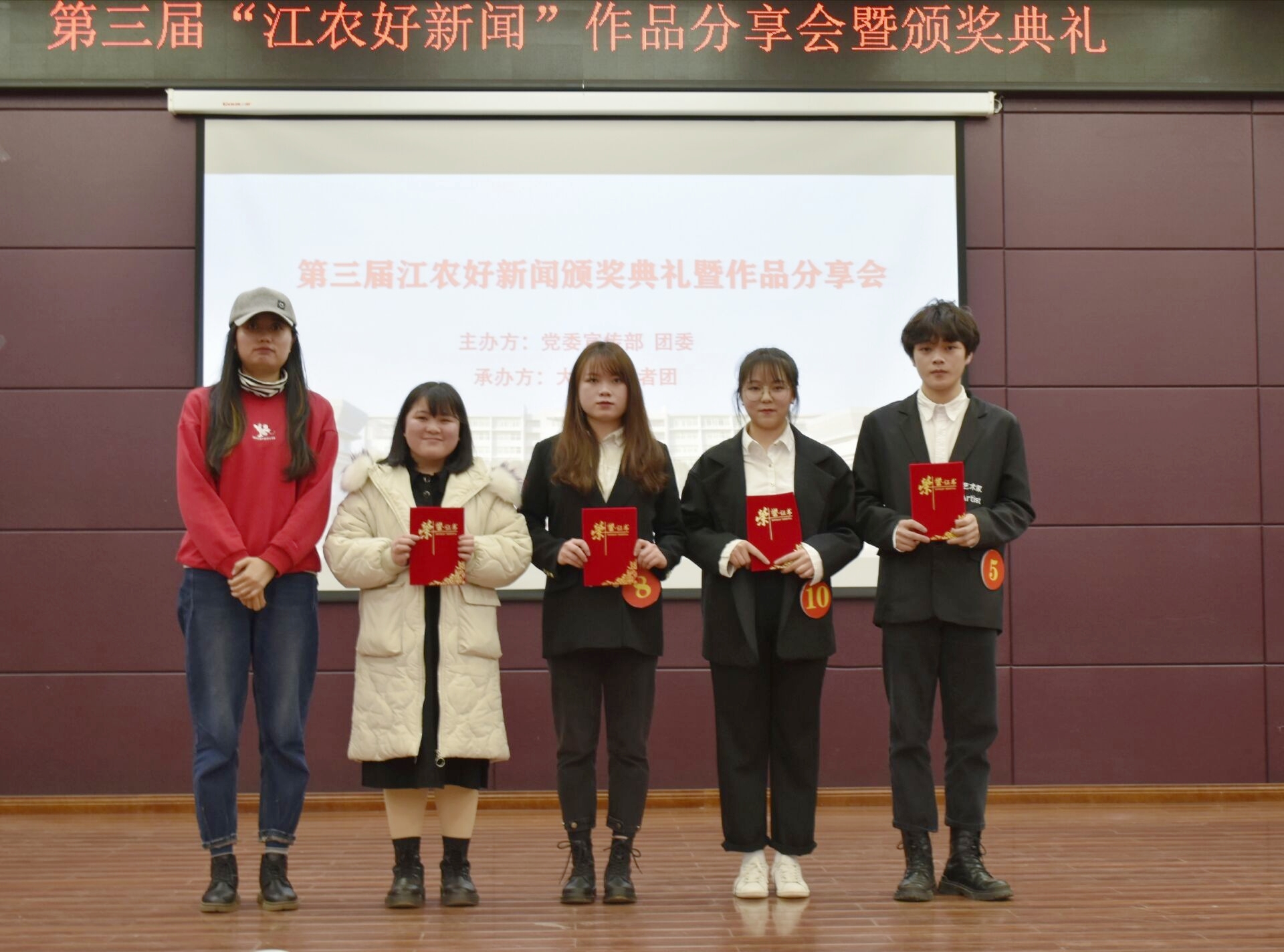 12月15日晚,我校于大学生活动中心501举办了第三届“江农好新闻”决赛分享会暨颁奖典礼。其中,我院公共事业管理1801班余雪、汉语言文学1802班黄慧敏、汉语言文学1902班雍雅轩三人进入决赛,获得优秀奖。